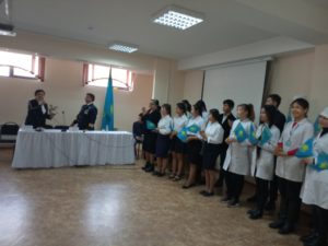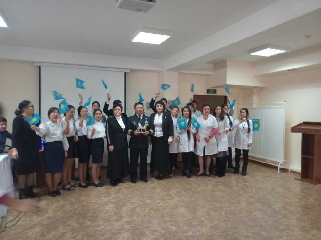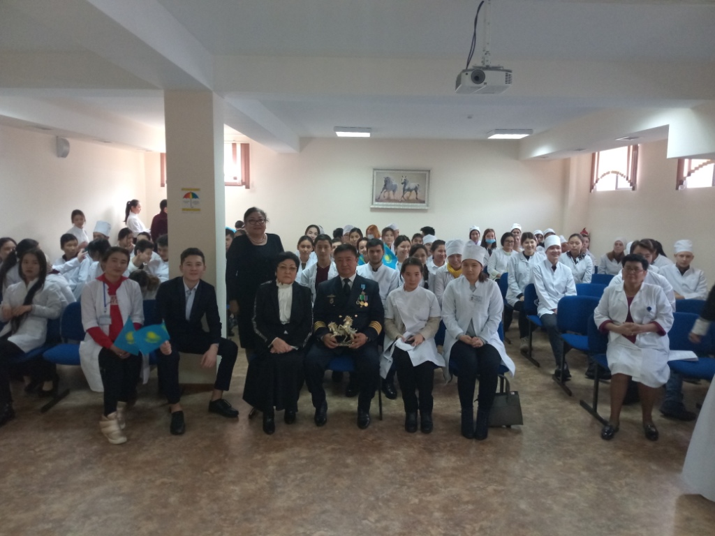 Открытие встречи началась с гимна Республики Казахстан, директор колледжа К.К.Курумбаева представила обучающимся гостя встречи. На встрече прозвучали песни, стихи на патриотическую тему, прозвучали кюи Курмангазы с силами обучающихся первого курса. Асхат Ажибаевич рассказал обучающимся о своей жизни и достижениях. В своей беседе он привил любовь к Родине, к патриотизму. Ребятам было очень интересна эта тема. Было очень много вопросов к нему, на которые он без устали отвечал