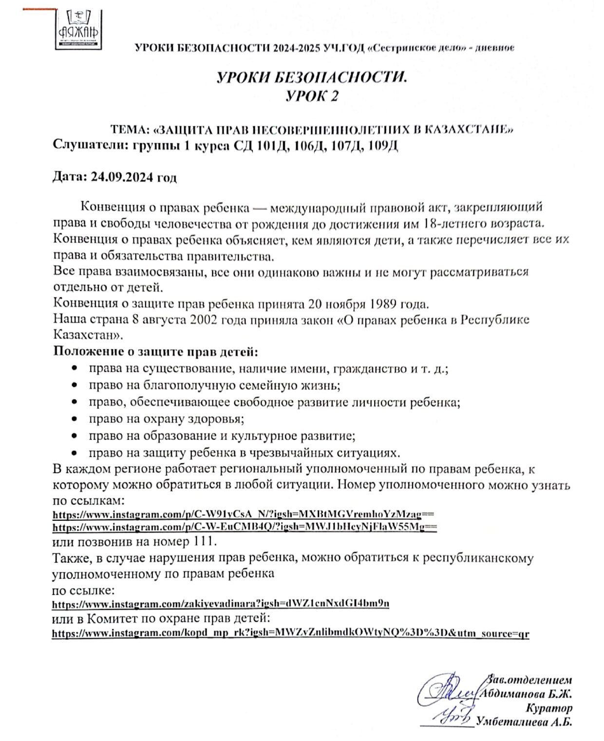 Учреждение образования "Высший Медицинский колледж "АЯЖАН"