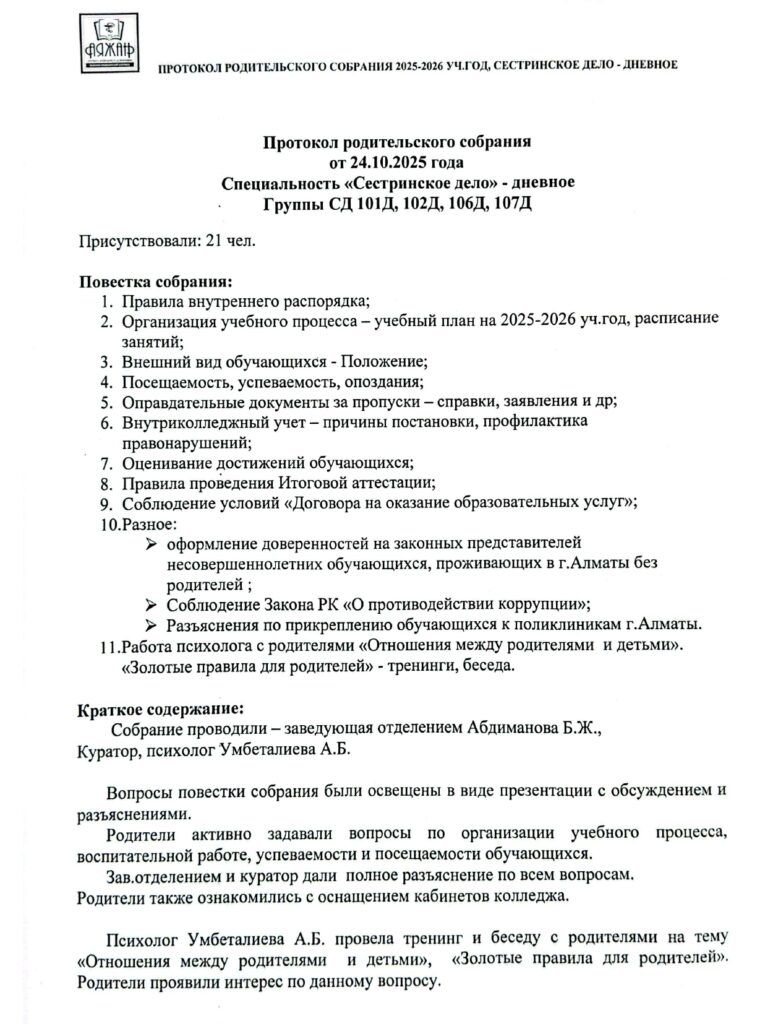 Учреждение образования "Высший Медицинский колледж "АЯЖАН"