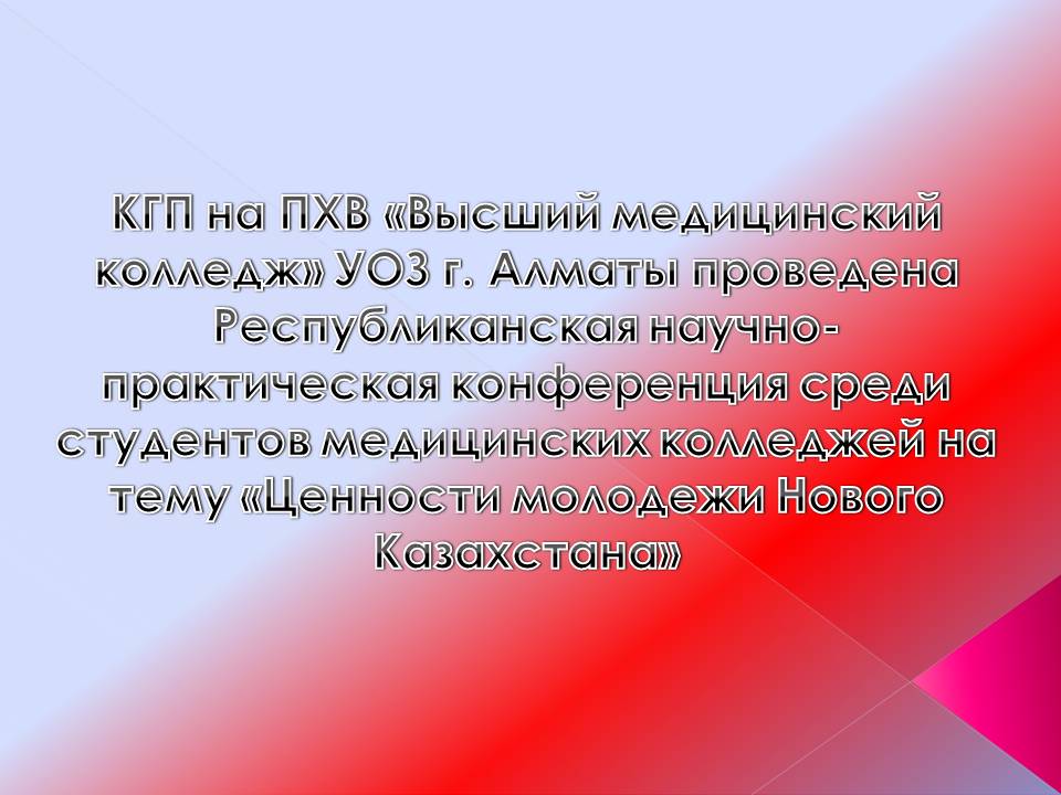 КГП на ПХВ «Высший медицинский колледж» УОЗ г. Алматы проведена Республиканская научно-практическая конференция среди студентов медицинских колледжей на тему: «Ценности молодежи Нового Казахстана»