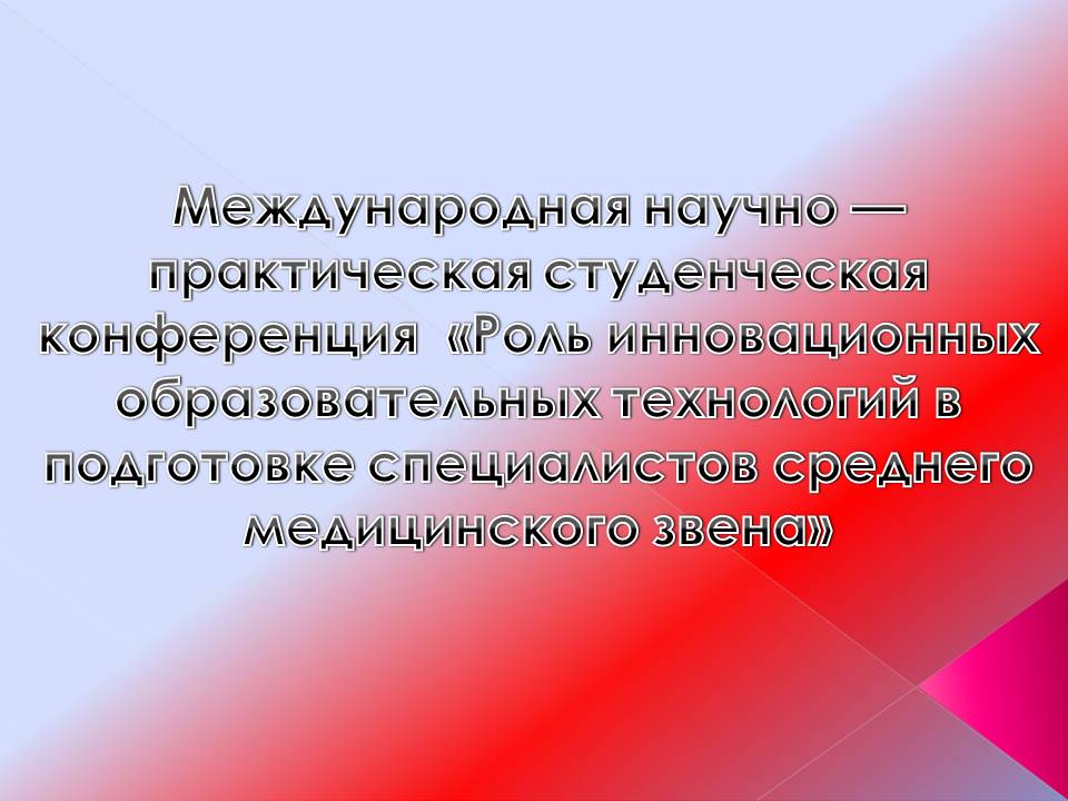 22 Дек НОВОСТИ Международная научно – практическая студенческая конференция ” Роль инновационных образовательных технологий в подготовке специалистов среднего медицинского звена” 10 февраля, 2023 By admin 20 декабря 2022 год. Международная научно - практическая студенческая конференция " Роль инновационных образовательных технологий в по...Подробнее